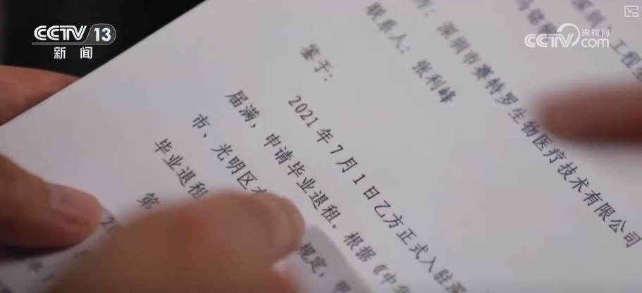 而对于未来产业的布局和发展,当地不只是聚焦某个阶段,而是全流程“陪同”。在走访中,记者看到了一份特别的“九游会股份有限公司租期到期”协议,上面写着“申请毕业退租”。中国科学院深圳先进院合成所产业创新与转化中心副主任马铭驹介绍,他们这边最快的一个毕业成长的企业,待了四个半月,已经融到足够的资本,现在在新的园区场地里面,整个空间将近2000平方米。他们提供的服务是很多其他“孵化器”和“加速器”不能够提供的,都是无偿的。